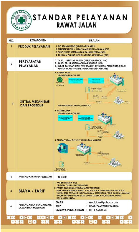Sesuai dengan standar pelayanan yang telah ditetapkan berikut pelayanan dokter spesialis dan jam pendaftaran pasien Instalasi Rawat Jalan sebagai berikut :